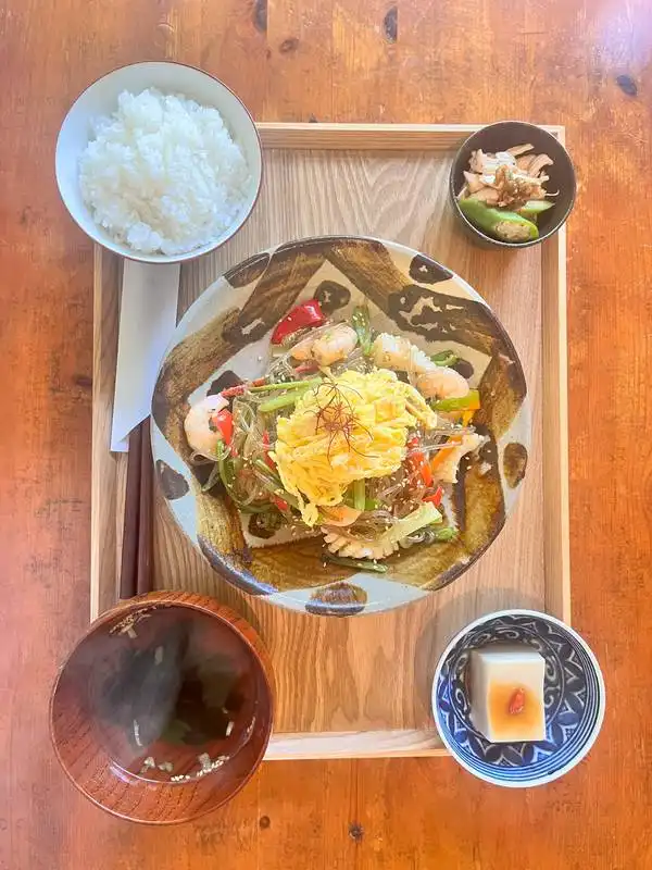 本当に料理も美味しそうだし、盛り付けが綺麗です。お皿も綺麗。木のお盆も素敵。