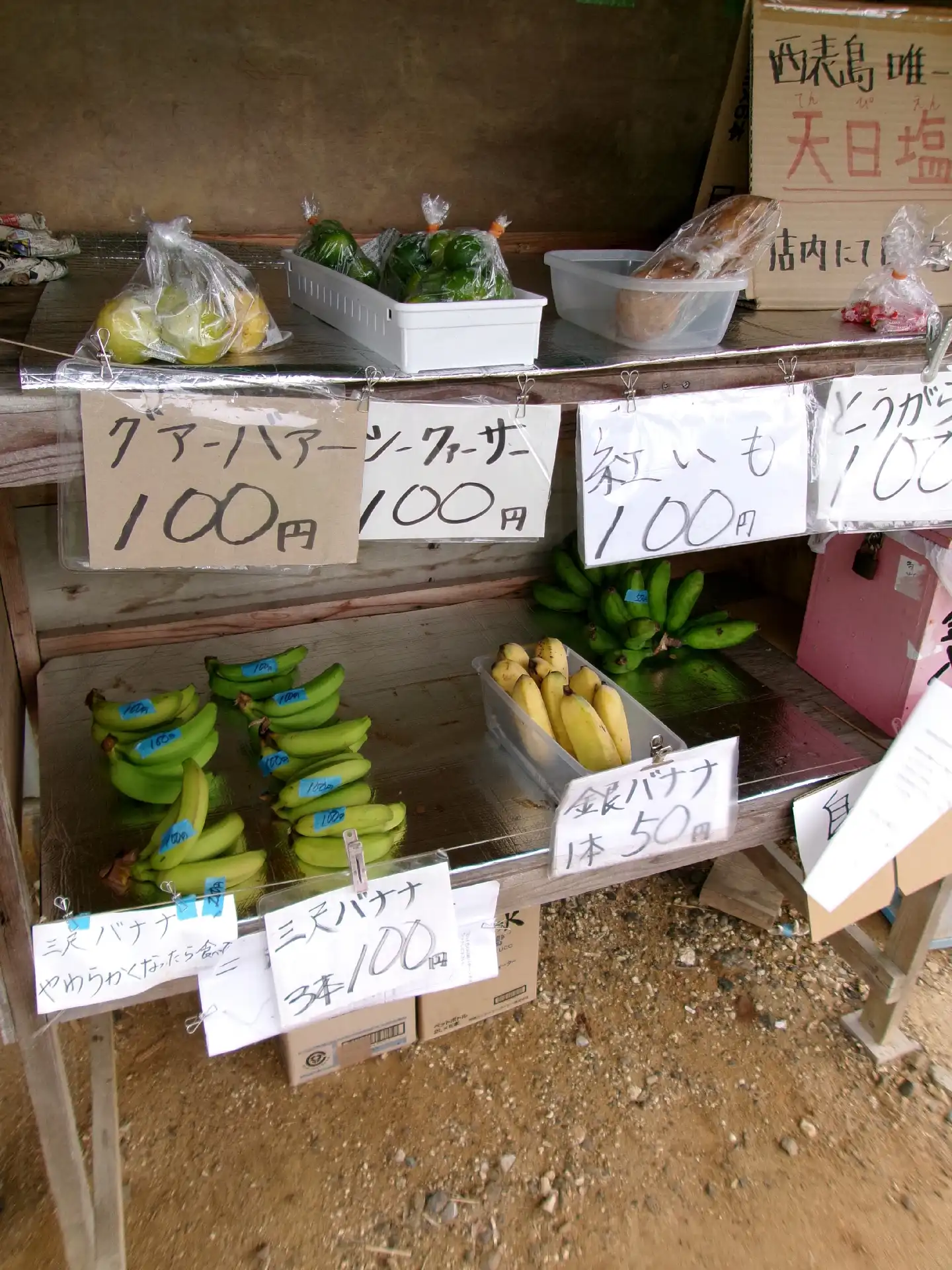 パインはもう時期が終わったので無人売店には出ませんが、バナナや他のフルーツや野菜でいっぱいでした。