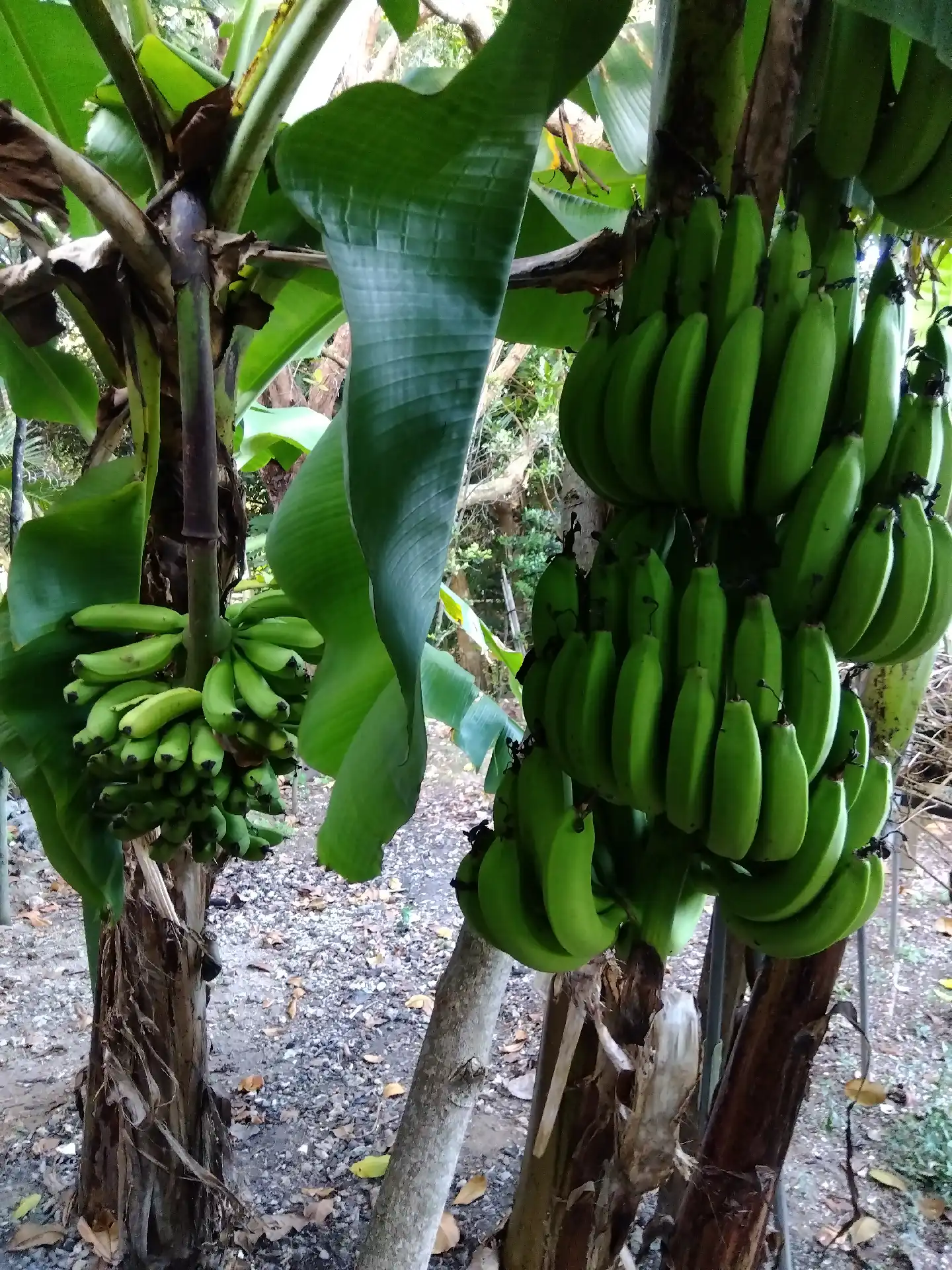 バナナはまだ青い時に収穫します。黄色くなるとすぐ鳥とかコウモリに食べられてしまうからです。
